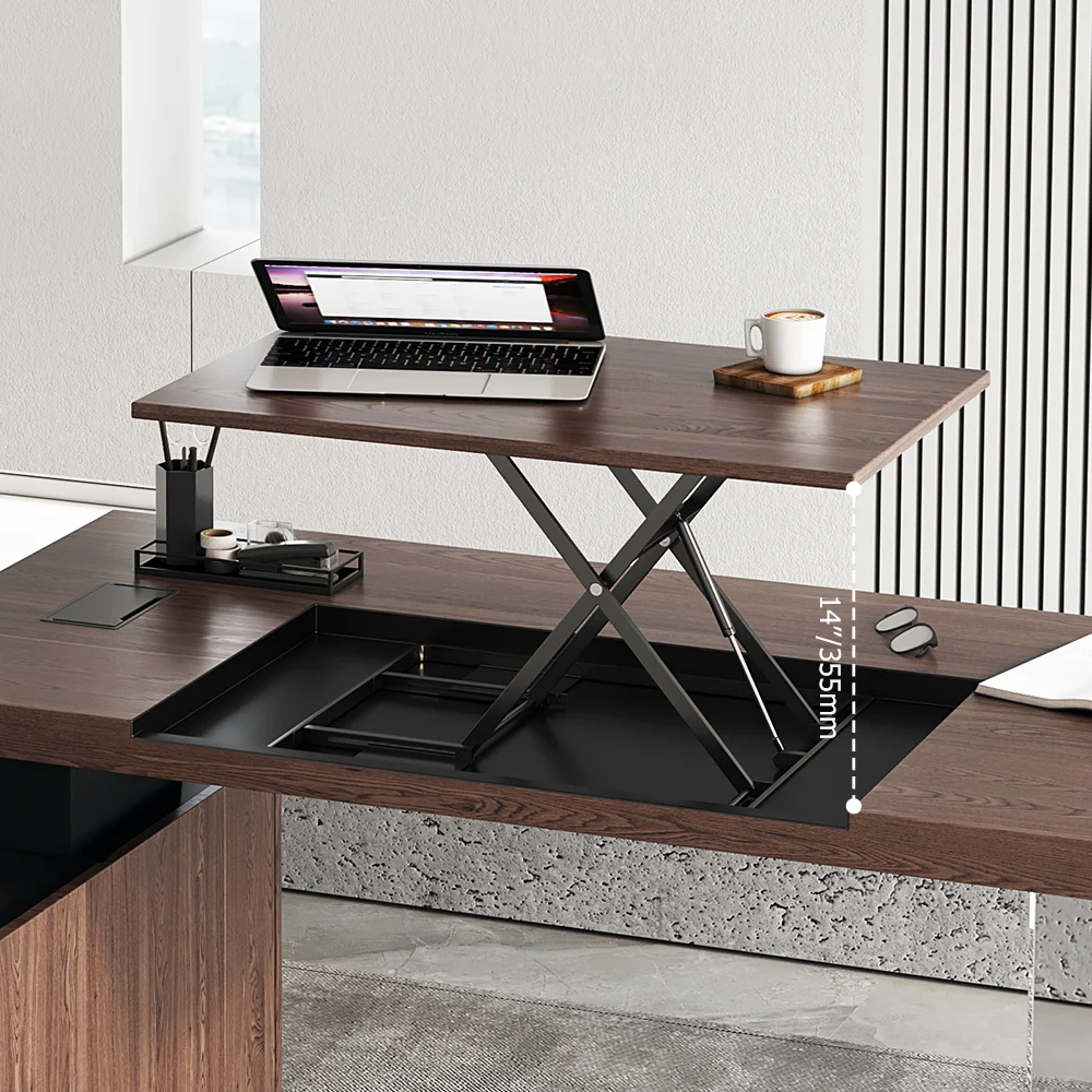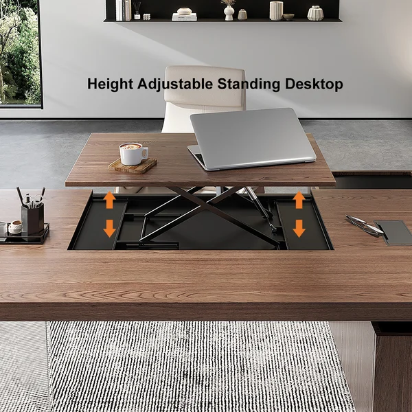 A new design for your home office. This standing l shaped desk features a trendy design with a chunky side cabinet and a large worktop that make it a joy to work at. Its desktop area has plenty of room for a laptop or computer, as well as notebooks and other writing needs. Thiscontemporary standing desk gives you lots of room for storing and organizing files and office supplies: This walnut standing desk with drawers. The most attractive one is that the desktop is equipped with a lifter. This dual-tiered platform sits on top of your current desk and gives you the benefit of standing or sitting to accomplish maximum productivity. Transitioning between sitting and standing throughout the long work day provides numerous health benefits for the body such as increased blood flow and reduced aches and pains. Standing throughout the day also helps the mind stay alert and productive.