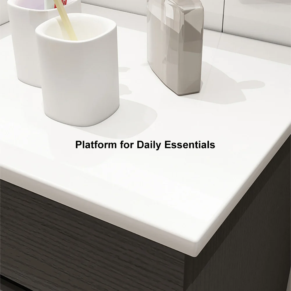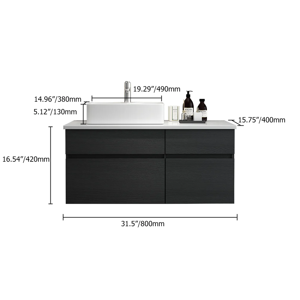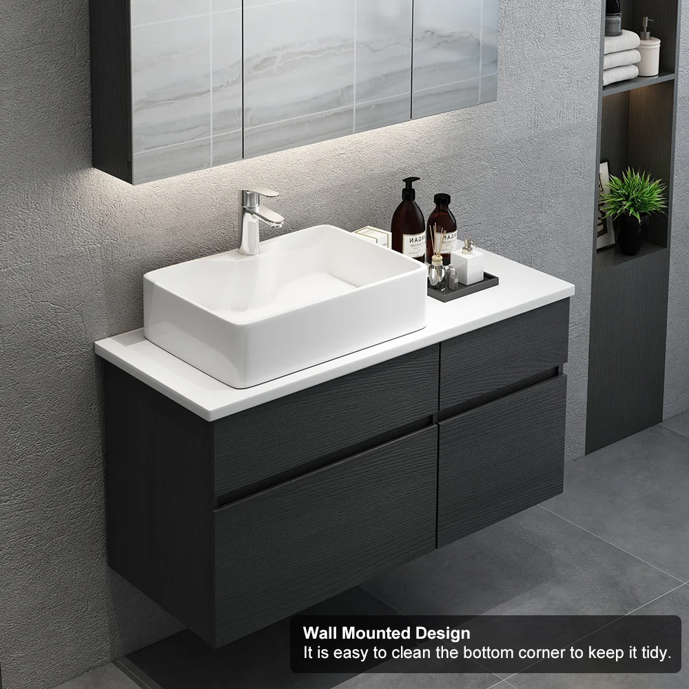 800mm Black & White Floating Bathroom Vanity Faux Marble Top Ceramic Countertop Basin