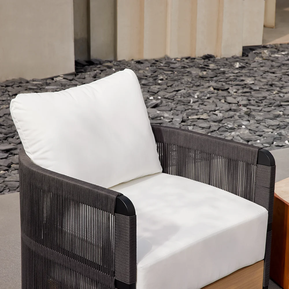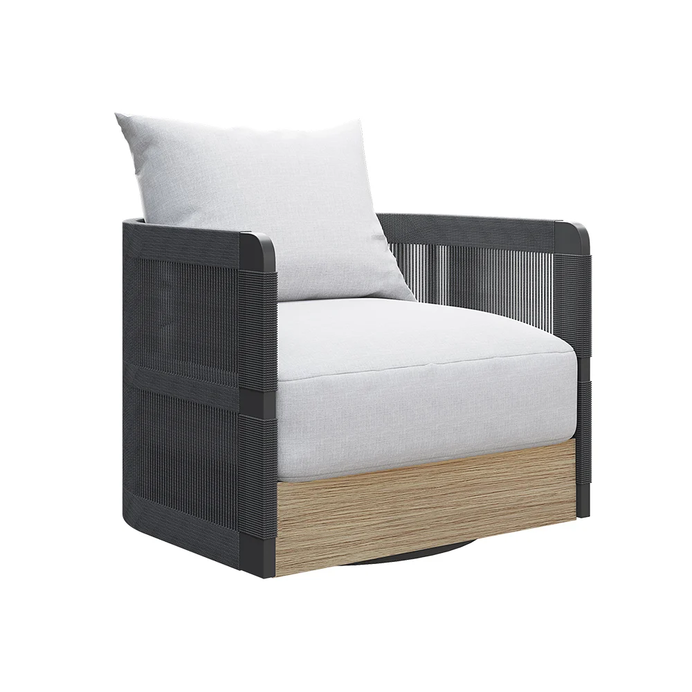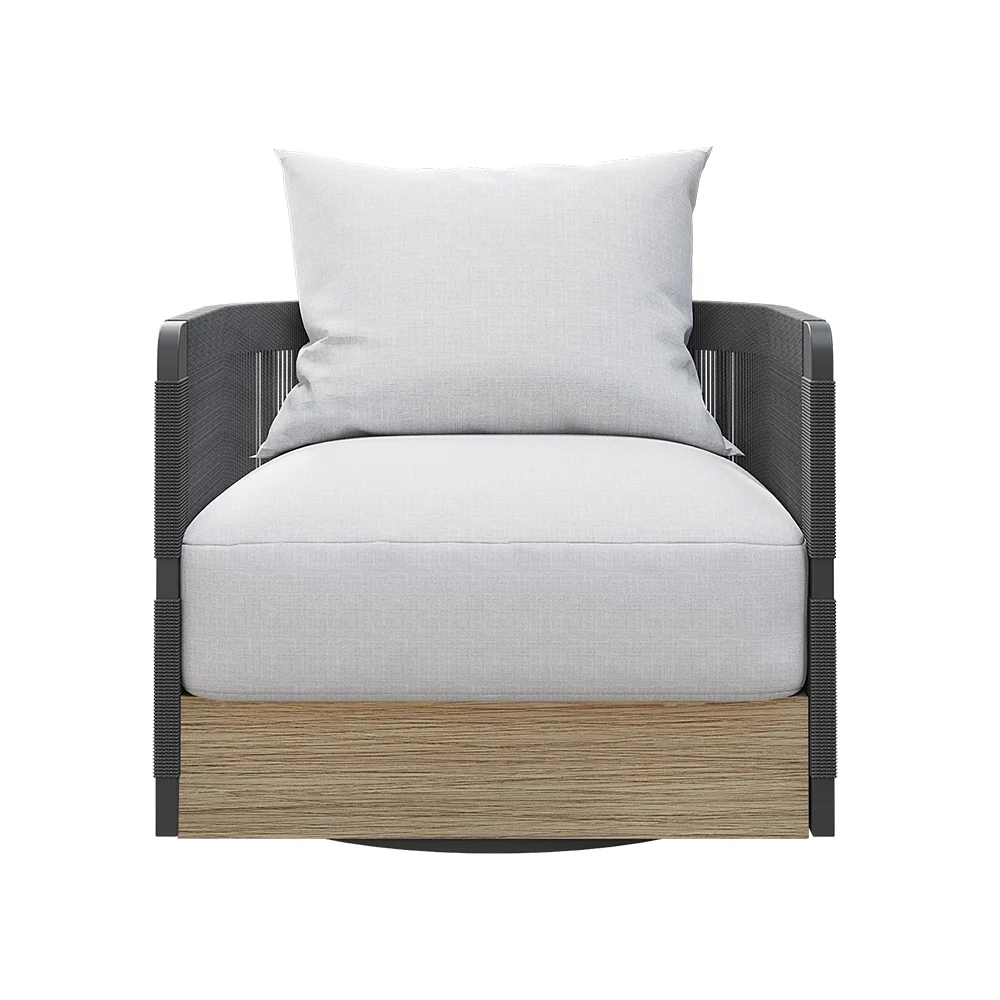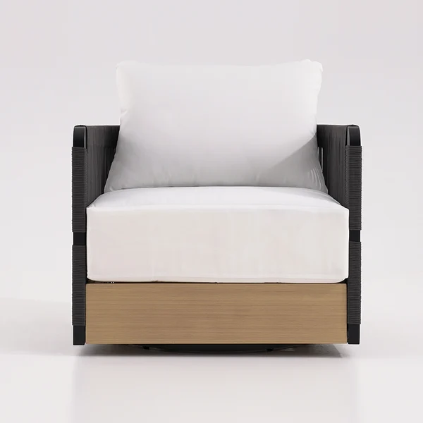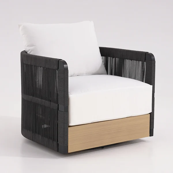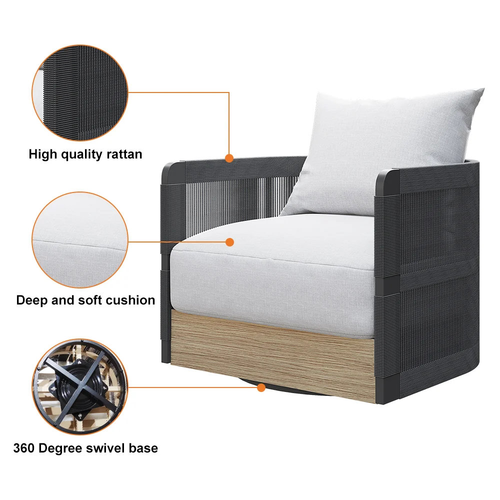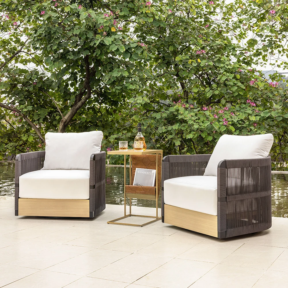 This is a modern outdoor sofa with an aluminum alloy frame and a rope weaving design. The chair rotates 360 degrees, so the cushions are water-resistant to withstand all weathers – thus, great to be used outdoors. Add elegance with this multi-purpose stylish outdoor sofa.