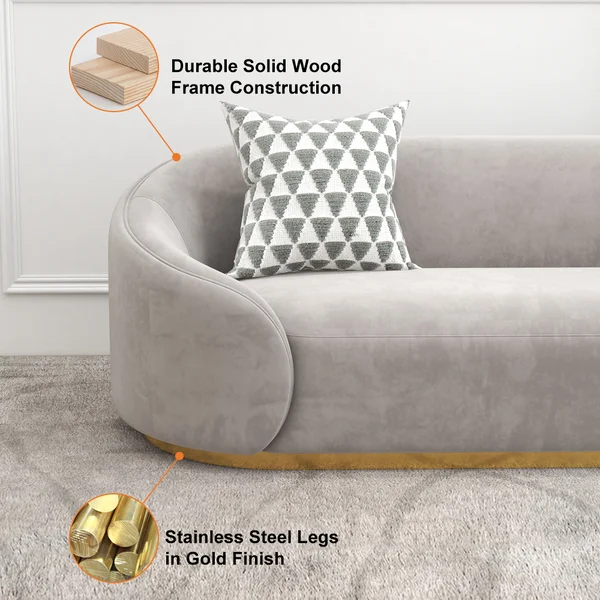 Give an eclectic impressive statement to your living room with this modern eye-pleasing sofa. Designed with velvet upholstery and a tight backrest, it enjoys a simple yet handsome look and offers optimum seating comfort as you sit back and relax. Featuring clean sleek lines, it adds homey warmth and a welcome feeling with modern minimalistic sensibility. Comes with a solid wood frame and stainless steel base in gold, it offers steady support and long-time usage.