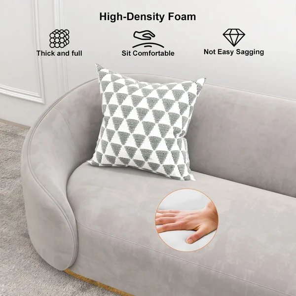 Grey 3-Seater Sofa Upholstered Velvet Sofa Pillows Included