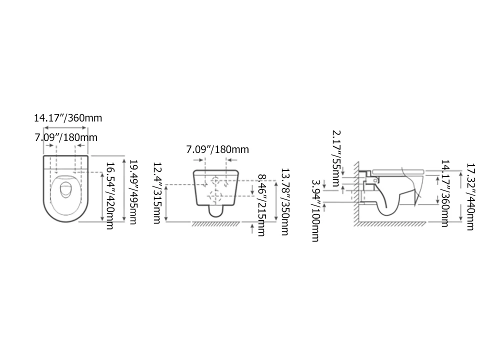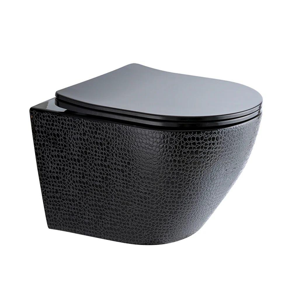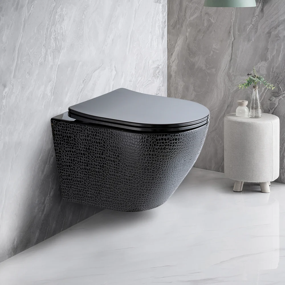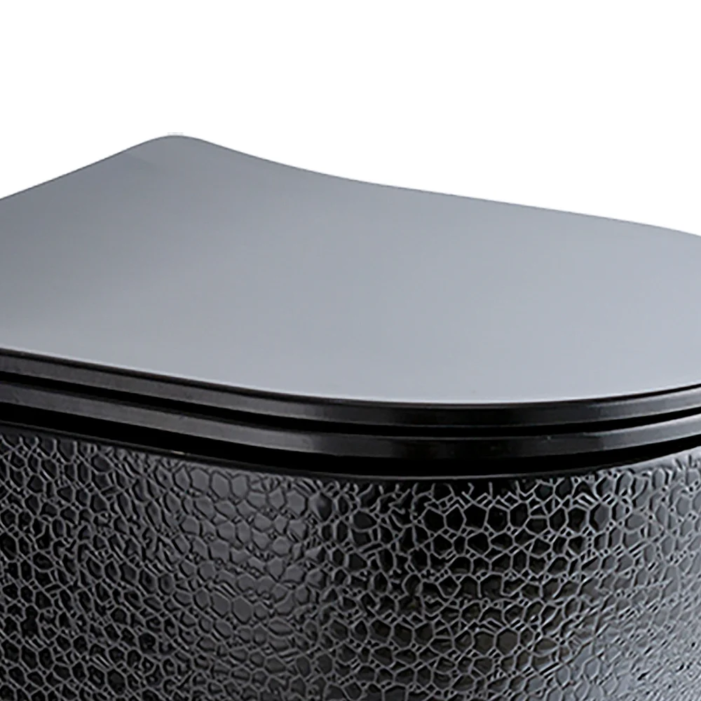 Immerse yourself in clean, green luxury with this rimless flushing rounded wall-mounted toilet. Each model mounts to the wall for a sleek, compact appearance. A round wall-hung toilet bowl saves precious space and adds style. Toilet seat covers are an ultra-thin-modern design. The sleekest and seamless design, that is incredibly easy to clean. With strong rimless flushing, no residue of dirt and it is water saving. Extra heavyweight capacity, no worry for subsidence and cracking. Several colour choices will perfectly match your bathroom decor. The gold one is white inside and gold outside while the other three colours are black inside. A wonderful addition to any bathroom!