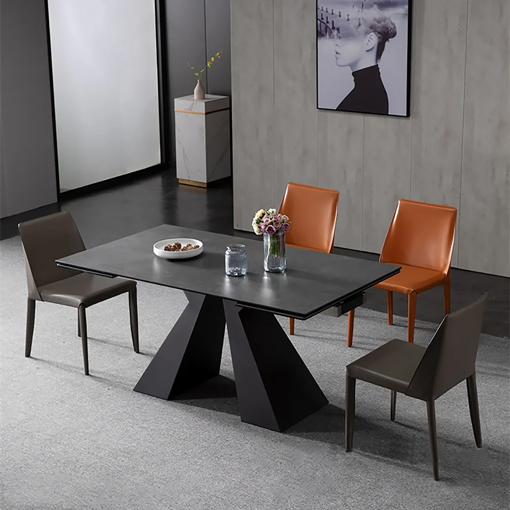 Minimalist Retractable Rock Slab Rectangular Luxury Folding Dining Table