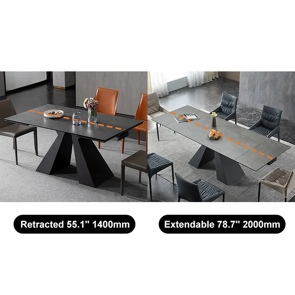 This is a classic rectangular table for formal usage that is elegant and not too complicated to assemble. A black carbon steel frame makes it a sturdy dining table. When the table leaves are completely extended, it becomes a large dining table that can accommodate up to 8 people. Powerful design innovations like Sintered Stone and carbon steel make the area seem even more upscale.