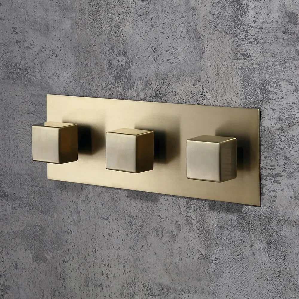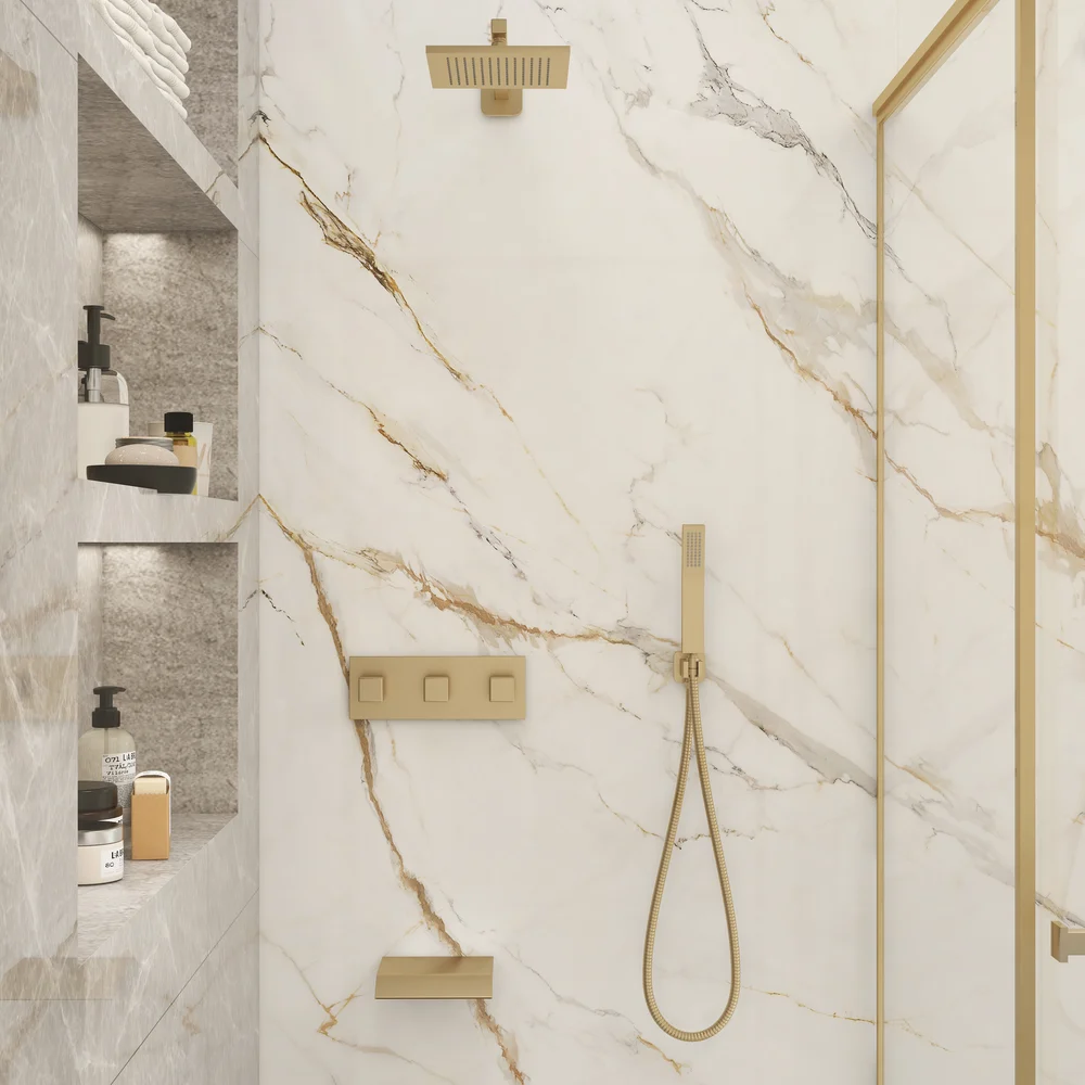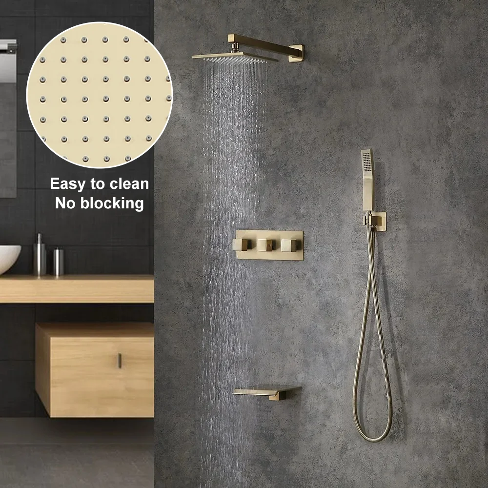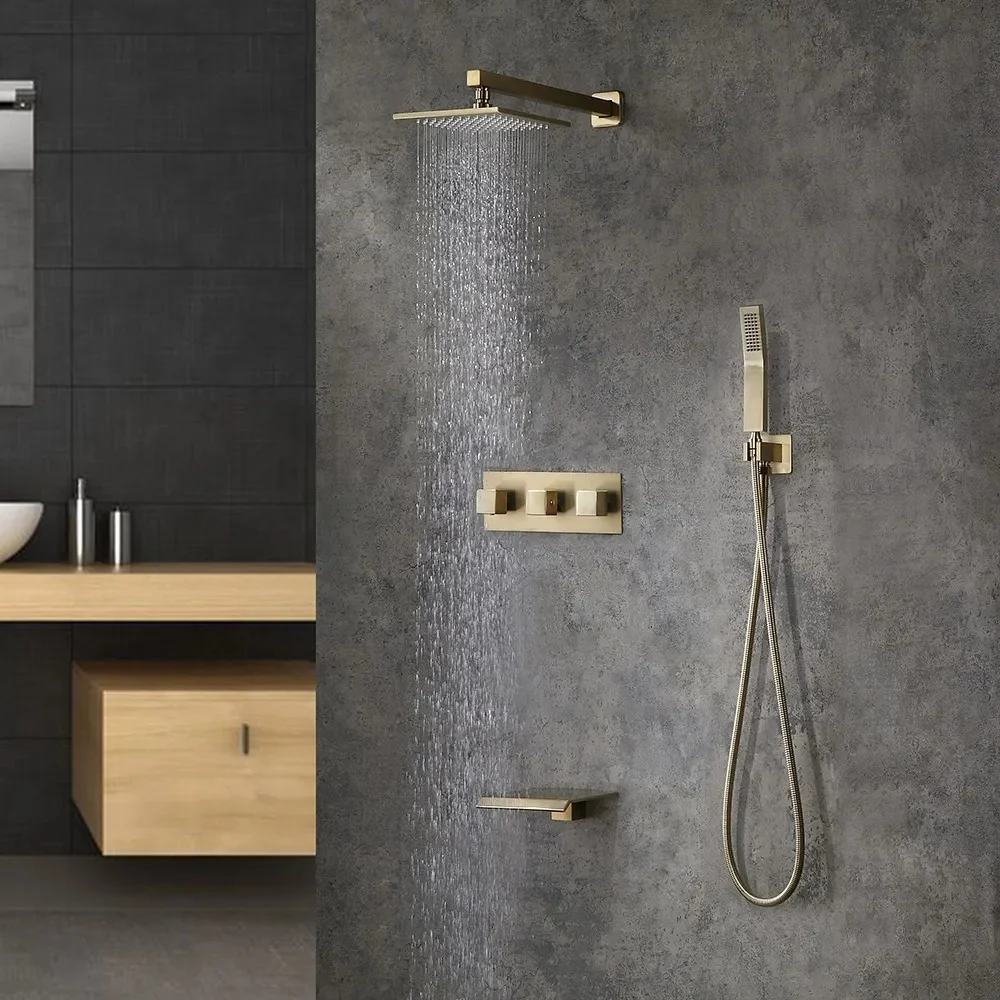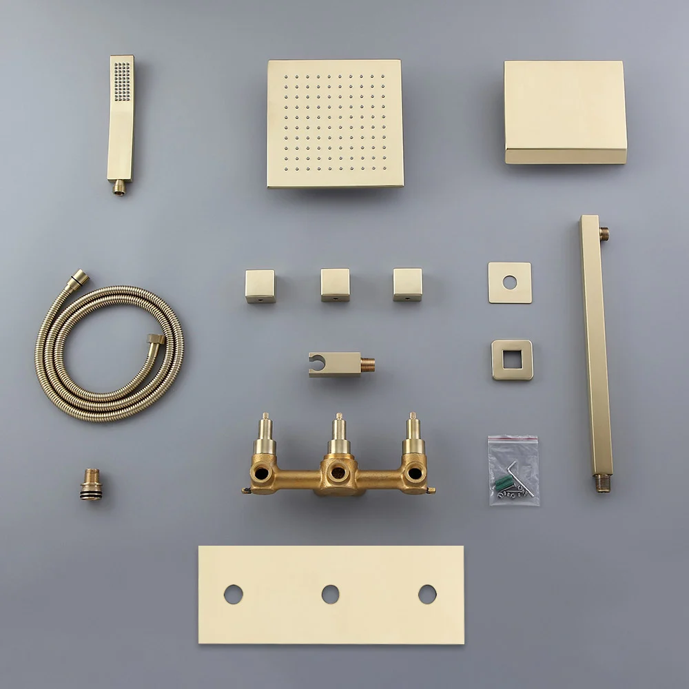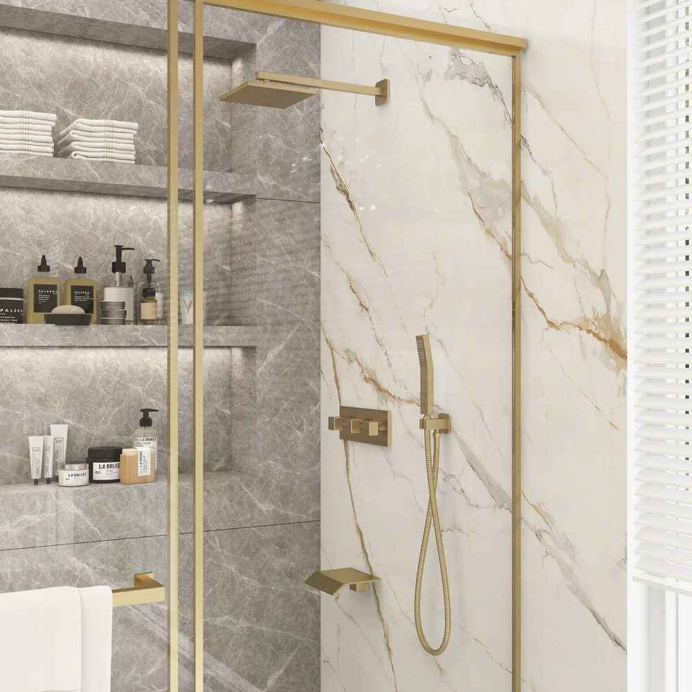 Moda Wall-Mounted 250mm Shower Set in Brushed Gold Rainfall 3 Function Solid Brass