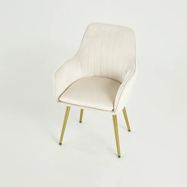 Modern Dining Chair Beige Velvet Upholstered Dining Chairs With Arms (Set of 2)