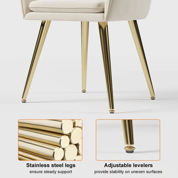 – The velvet pleated back dining chair with slant forearms descended from its oozing shape. Distinguish has a sturdy wood and stainless steel frame and is upholstered in stain-resistant performance velvet with deep foam cushioning. Encounter comfortable and resilient extension to the dining area, kitchen entrance, living room, bedroom, home office.