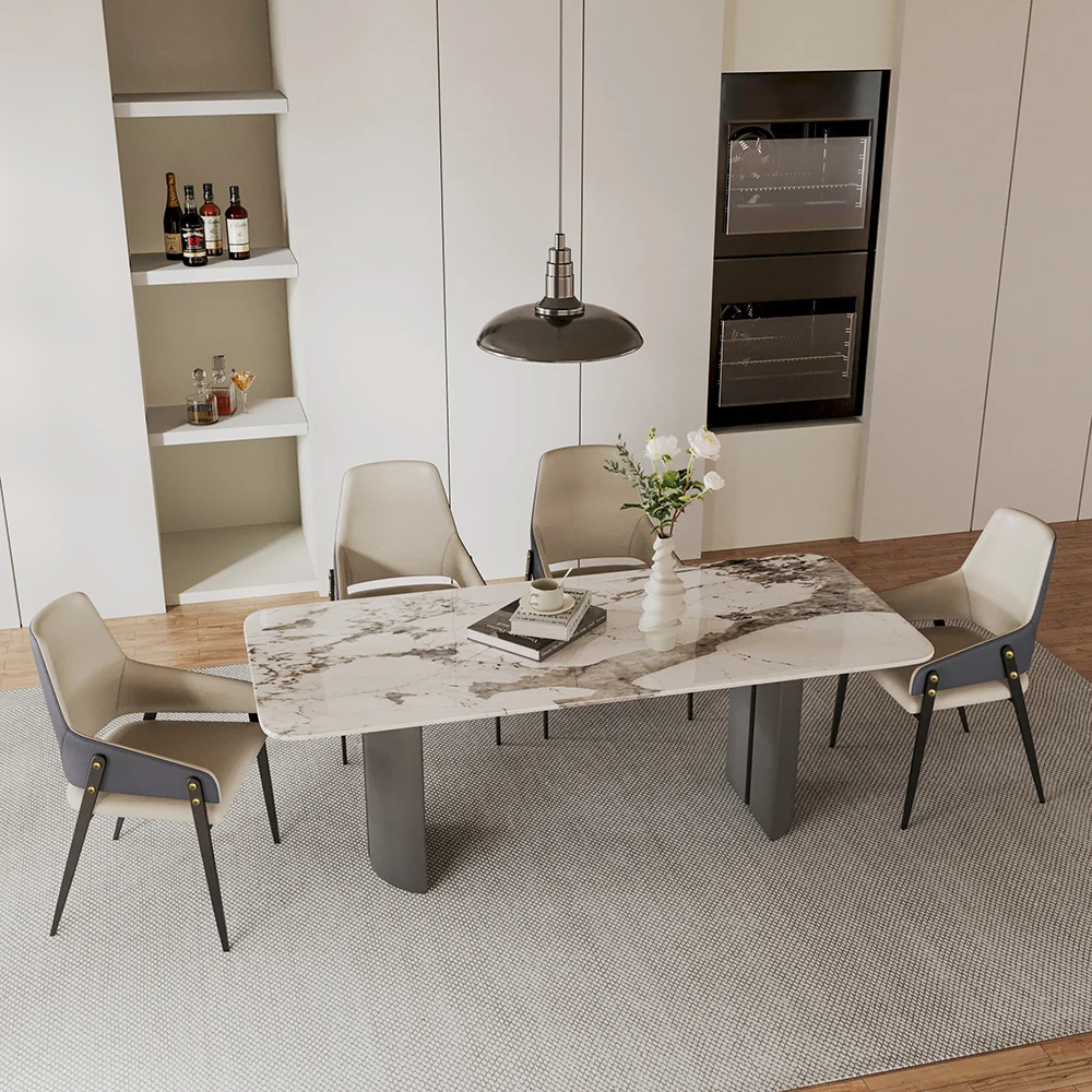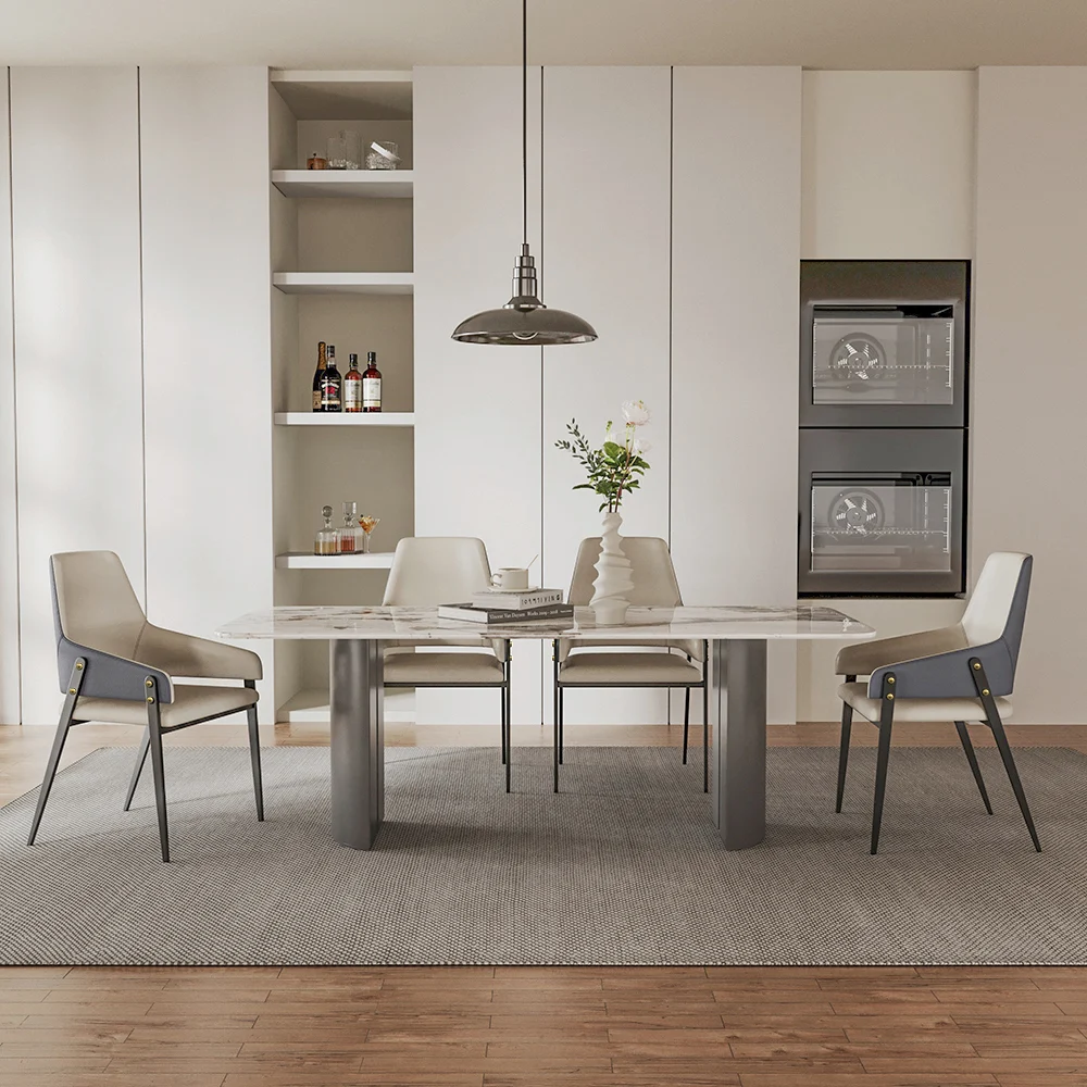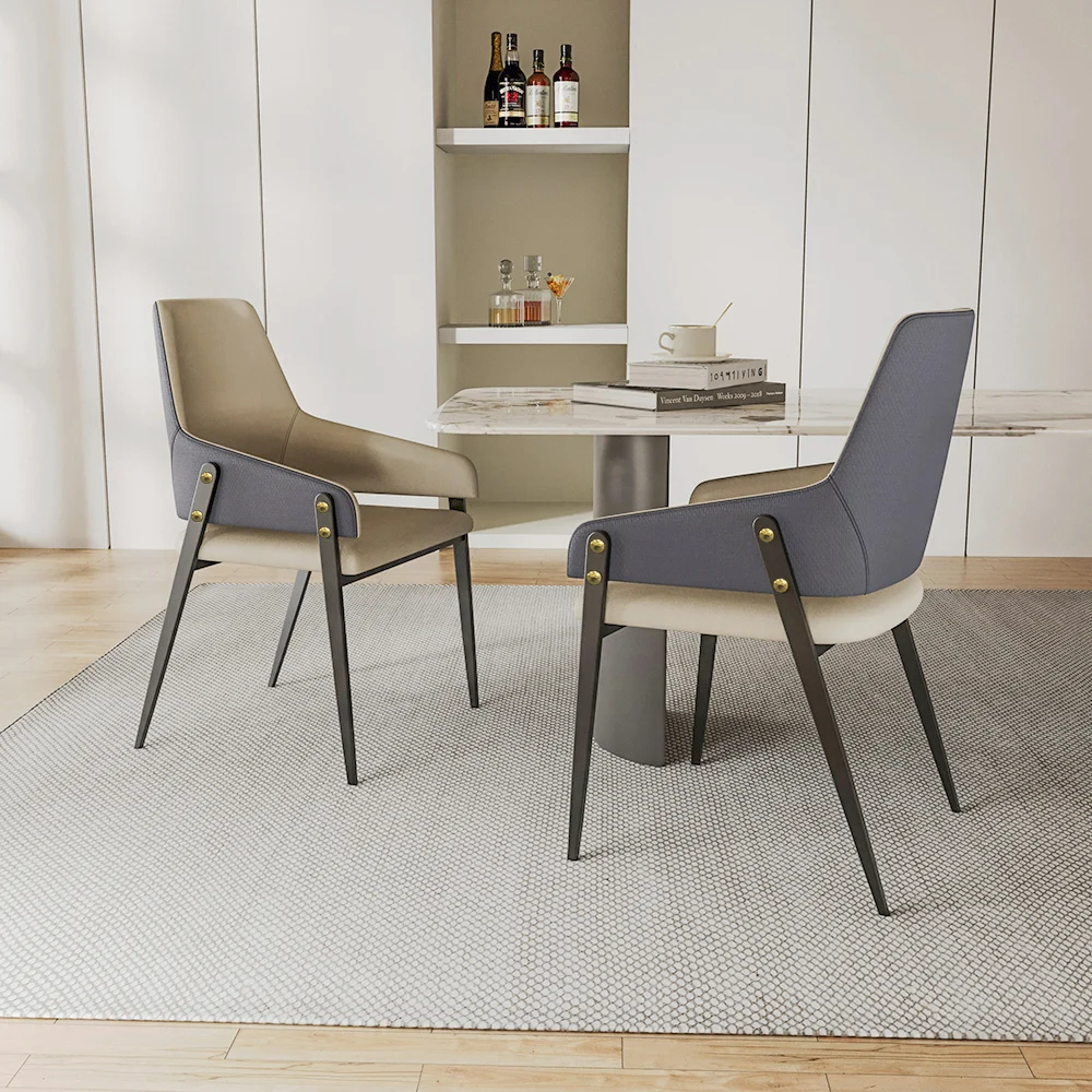 Seat yourself around your dining room table with chairs of impressive style and comfortable durability. It features a distinctive weave upholstery for a subtle texture. This set of 2 chairs provides a contrast in colour that gives a mannered vibe to refresh your interior decor. Upholstered in PU leather and filled with elastic foam, the seat offers you incredible comfort. Crafted with a carbon steel frame, it ensures long-lasting usage. Whether you are inviting guests over for a friendly meal or just settling down with your family, this set of 2 chairs brings a simple yet stunning atmosphere to your dining set.