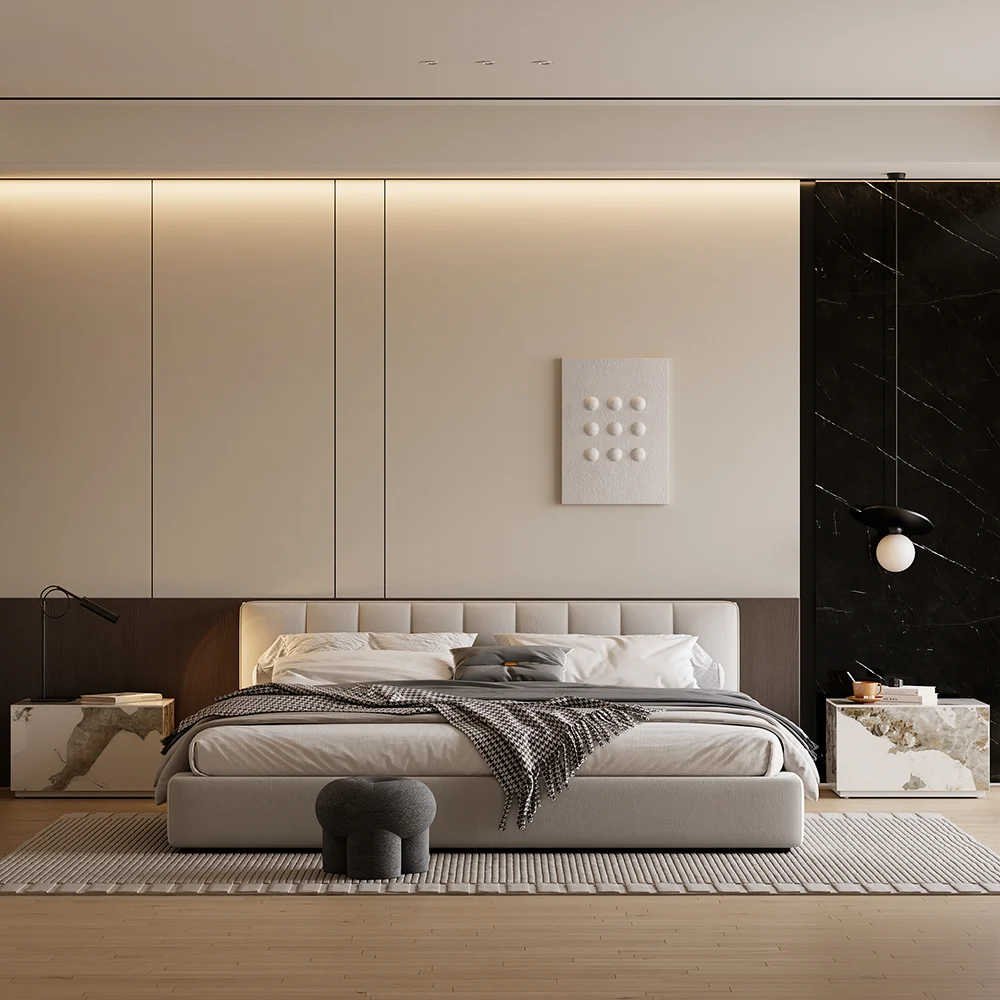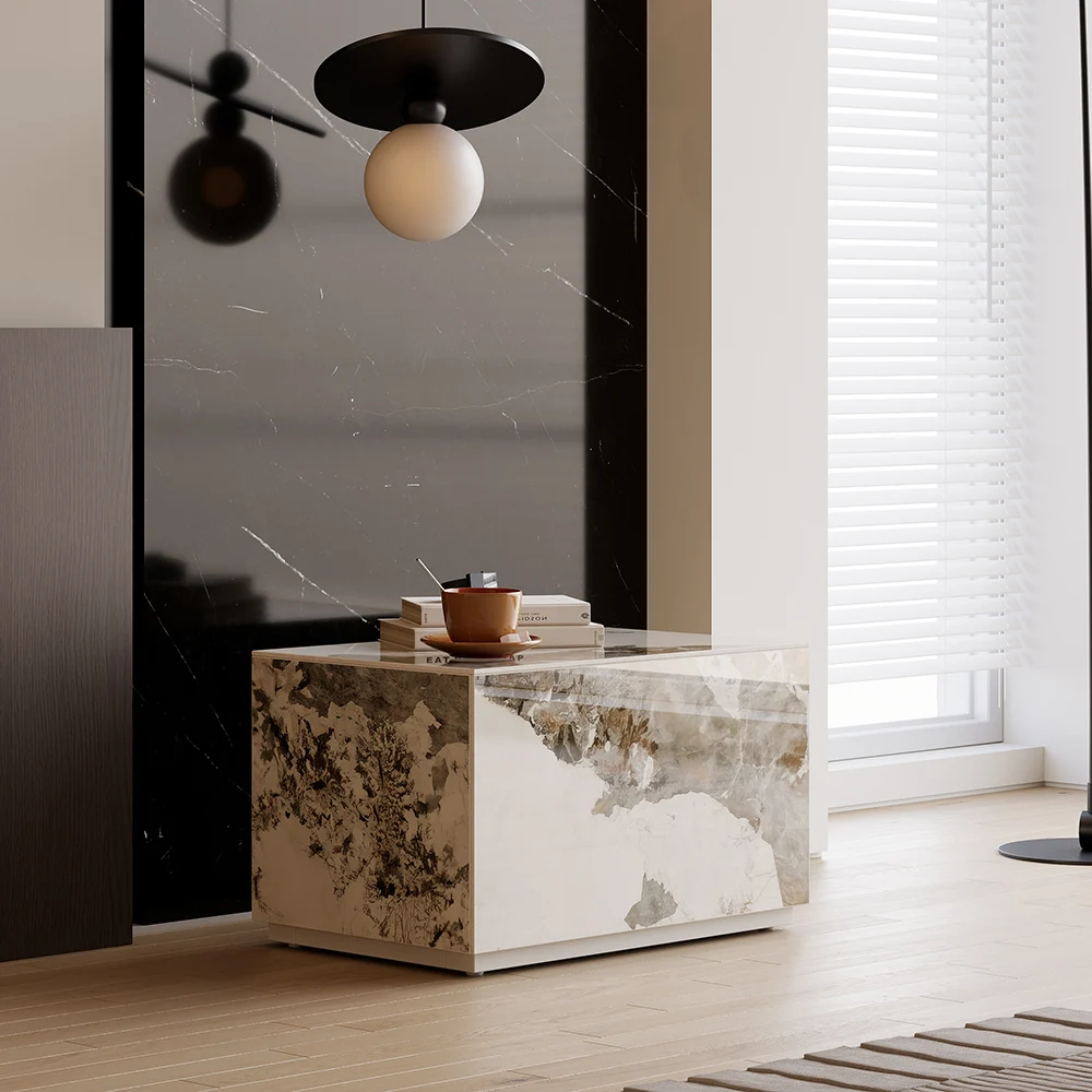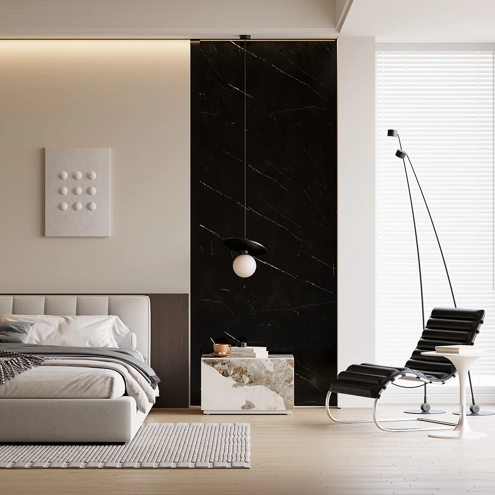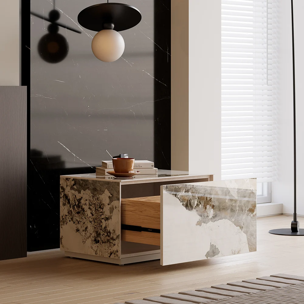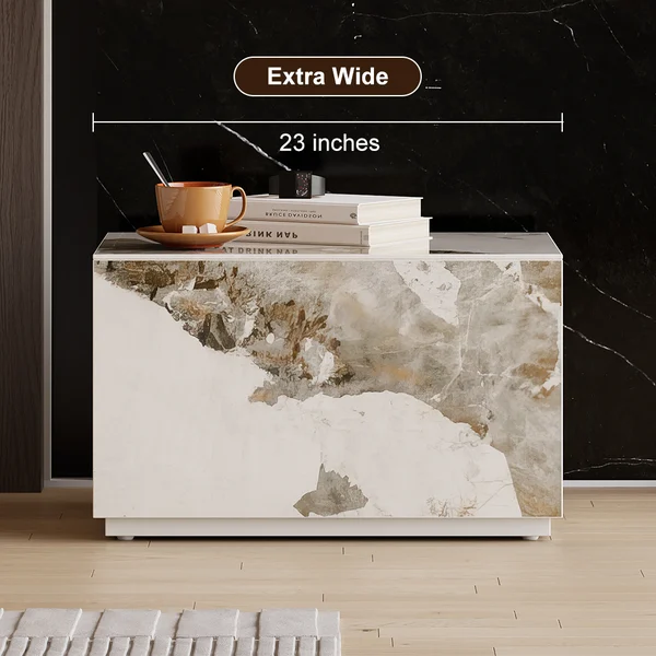 Modern White 600mmW Sintered Stone Nightstand 1 Drawer Bedside Table