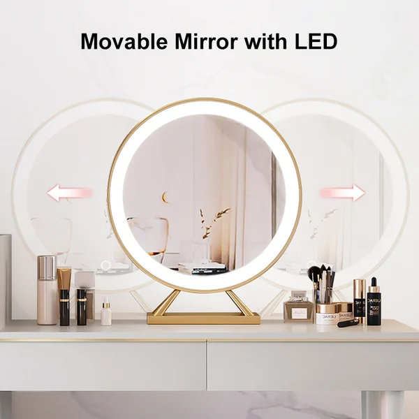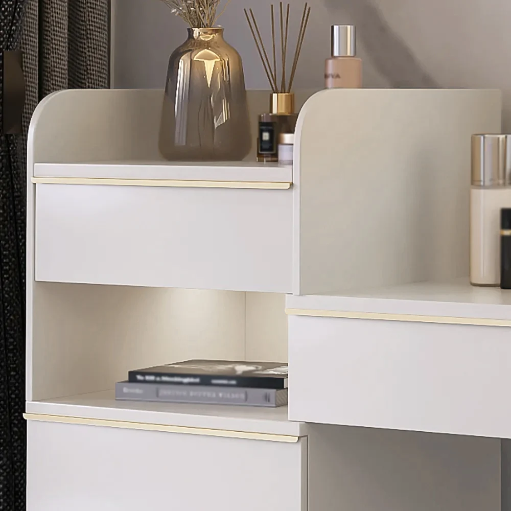 Off-white Makeup Vanity Set Dressing Table with Lighted Mirror Cabinet & Stool Included