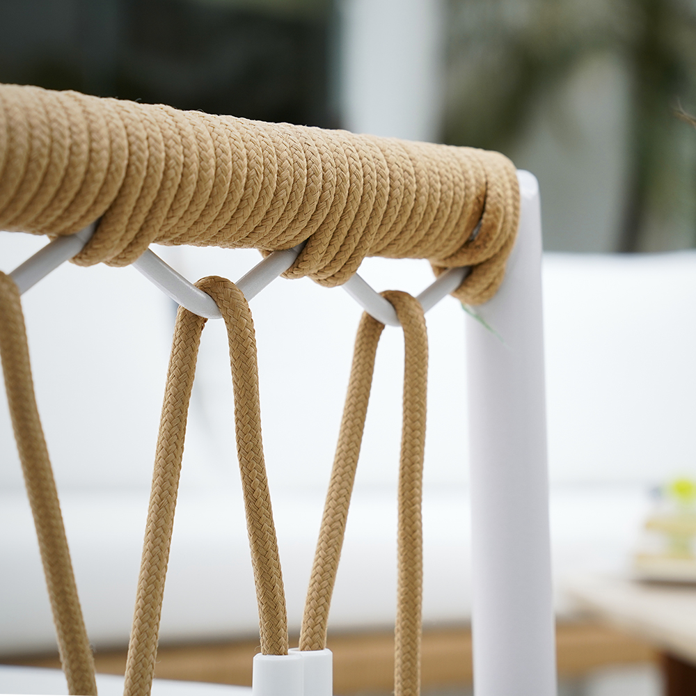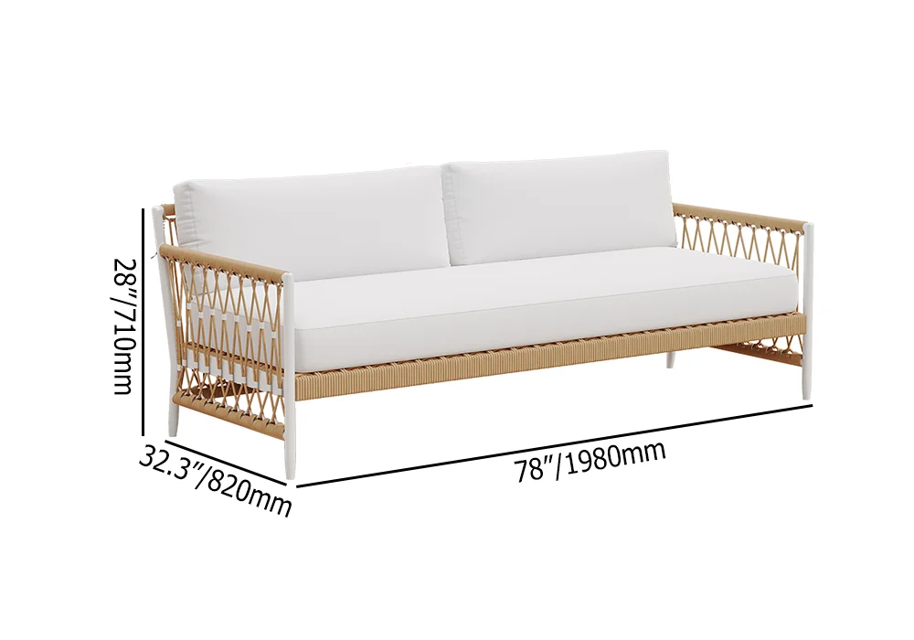 A picture of you and your family enjoying a beautiful summer outdoor time on a rattan sofa comes to your eyes. The sunbathing style of the beach club, the best choice for hot summer days. The seatback is designed into a shape of a nautical rope, with a white polyester cushion and pillow, making the entire chair sofa perfectly integrated into a beautiful summer day. This is the summer furniture you and your family need most.(Throw pillows will be shipped in random colors.)