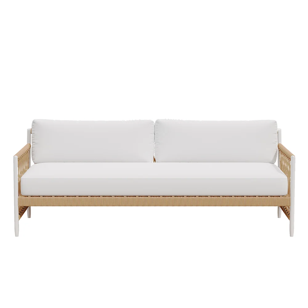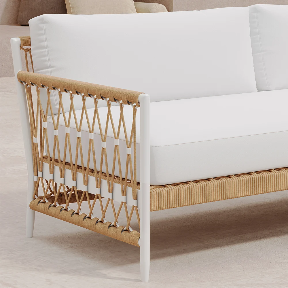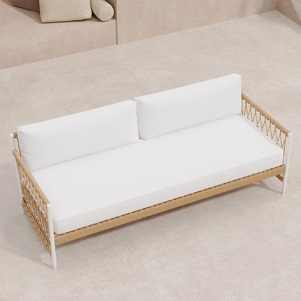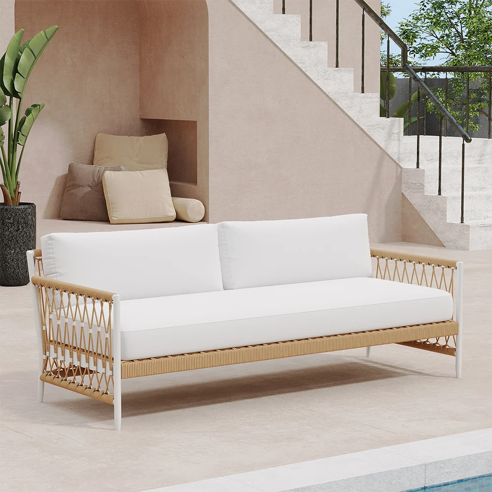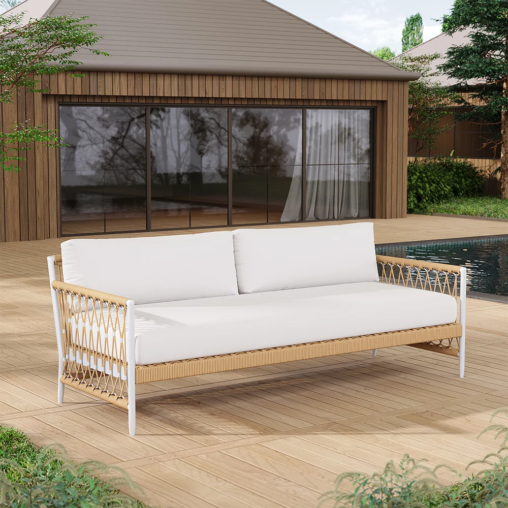 Ropipe Woven Rope Outdoor Sofa 3-Seater Sofa with White Polyester Pillow Cushion