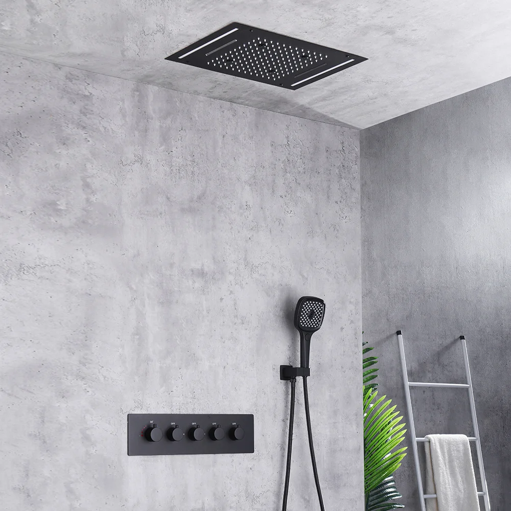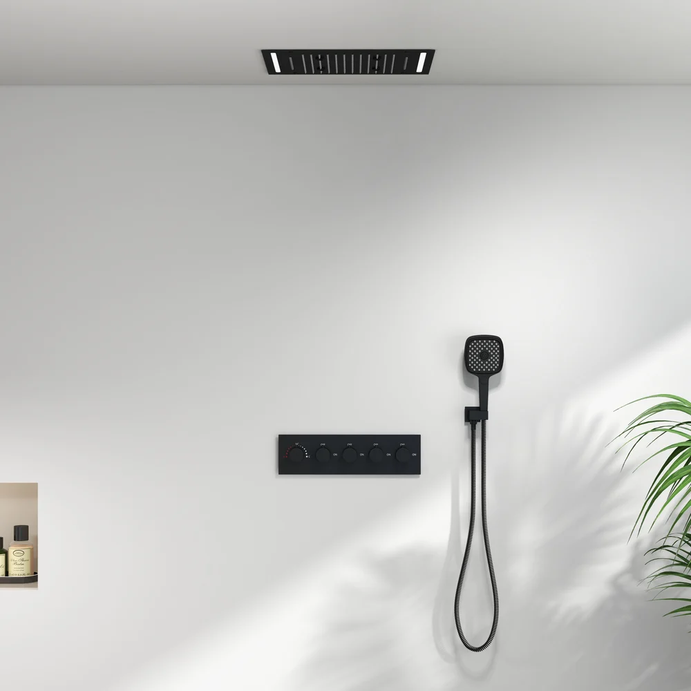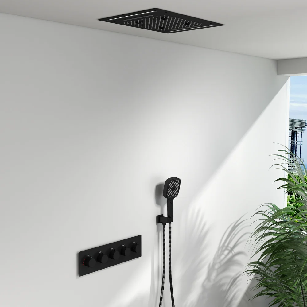 Wall-Mounted 500mm Shower Set Rainfall 4 Functions Thermostatic in Matte Black