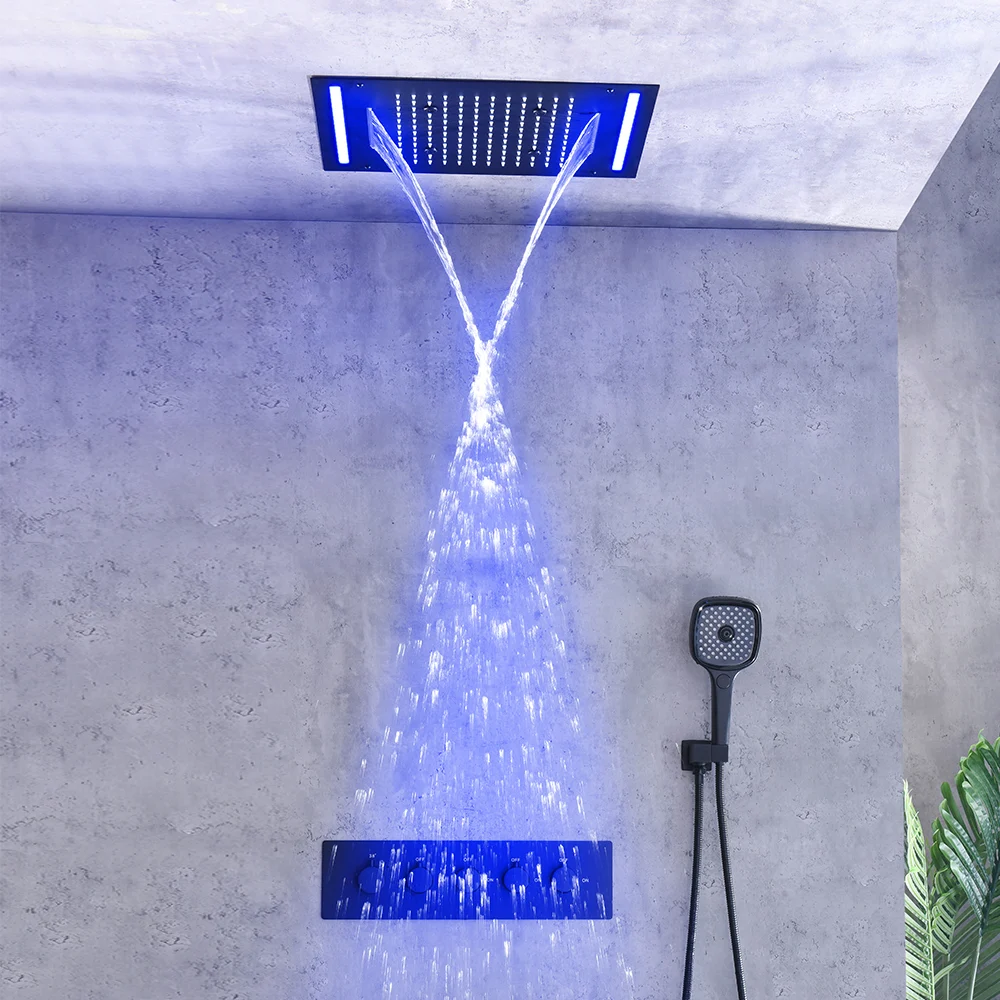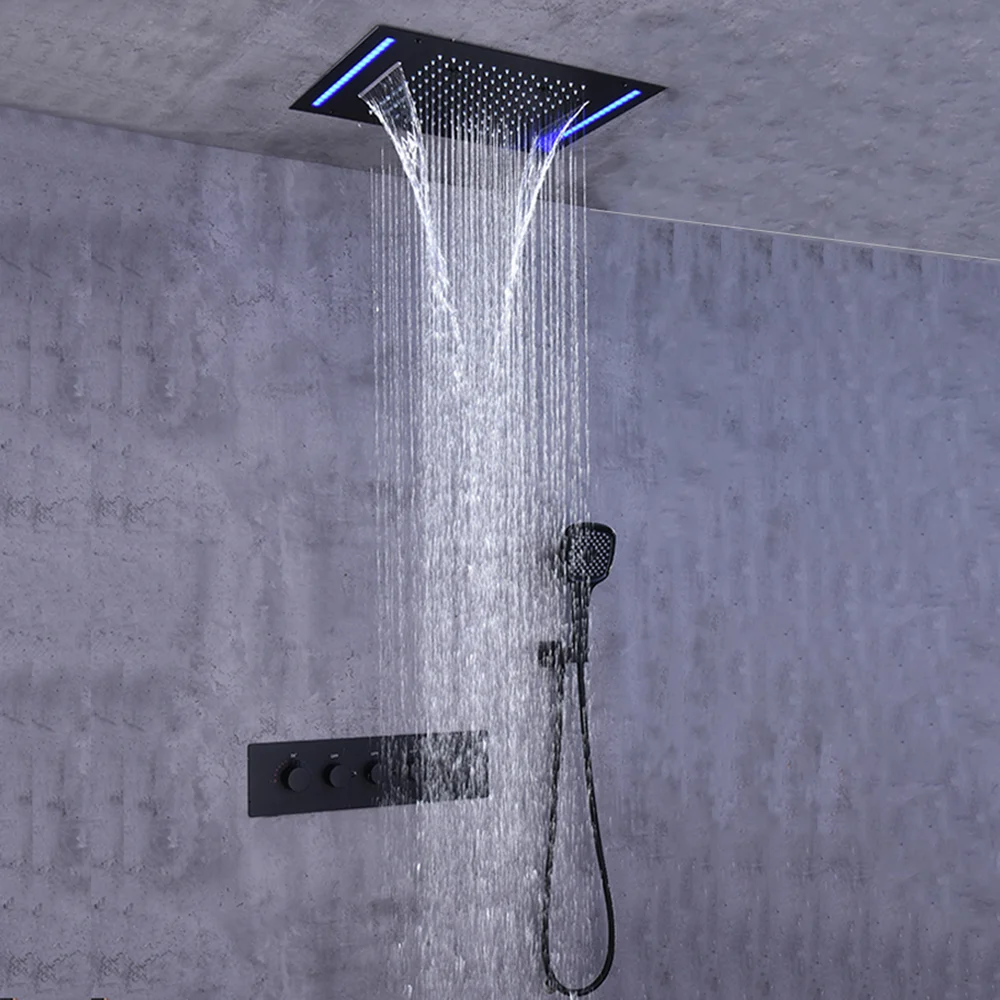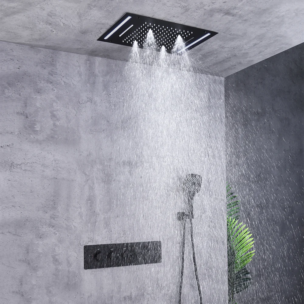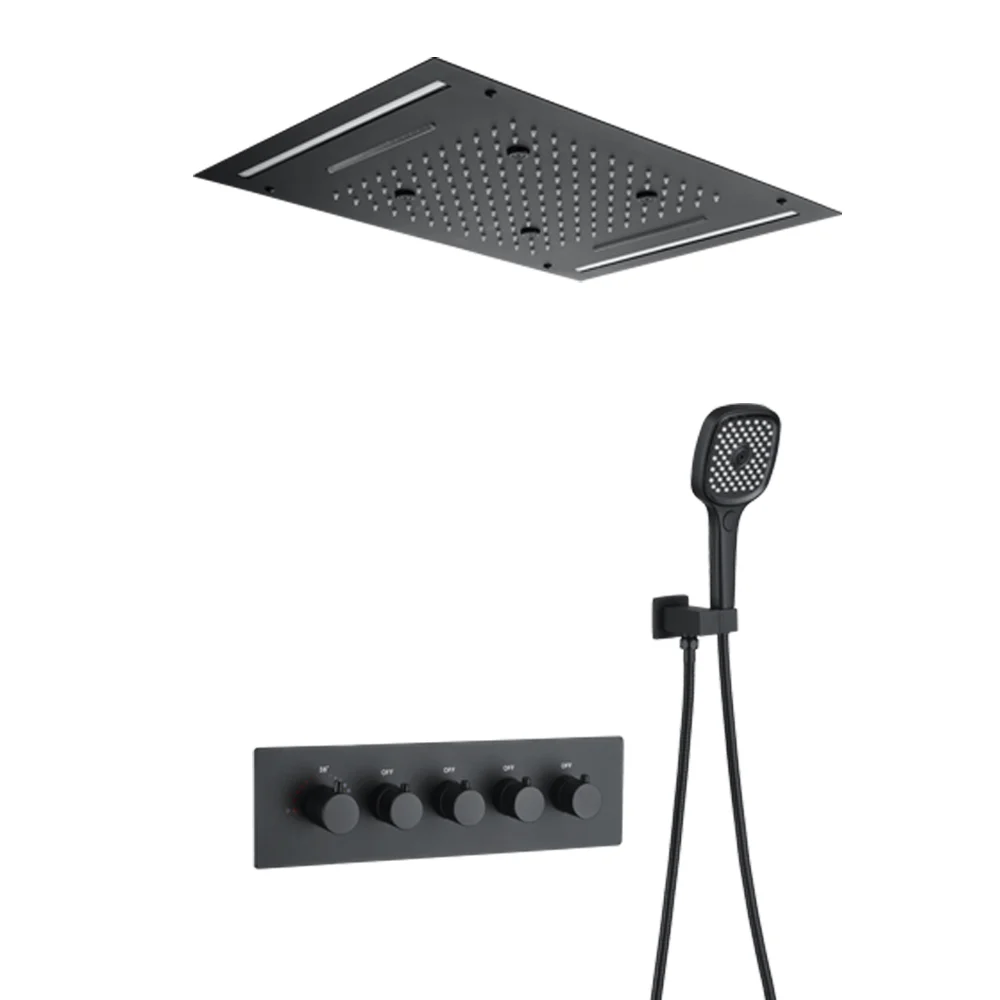 Wall-Mounted 500mm Shower Set Rainfall 4 Functions Thermostatic in Matte Black