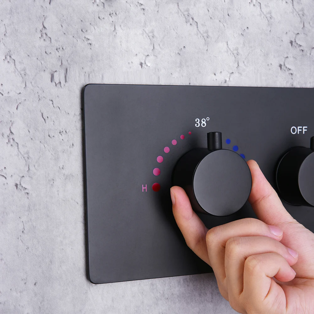 – Please note that this product comes with a thermostatic shower mixer valve with a scald prevention feature.