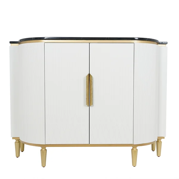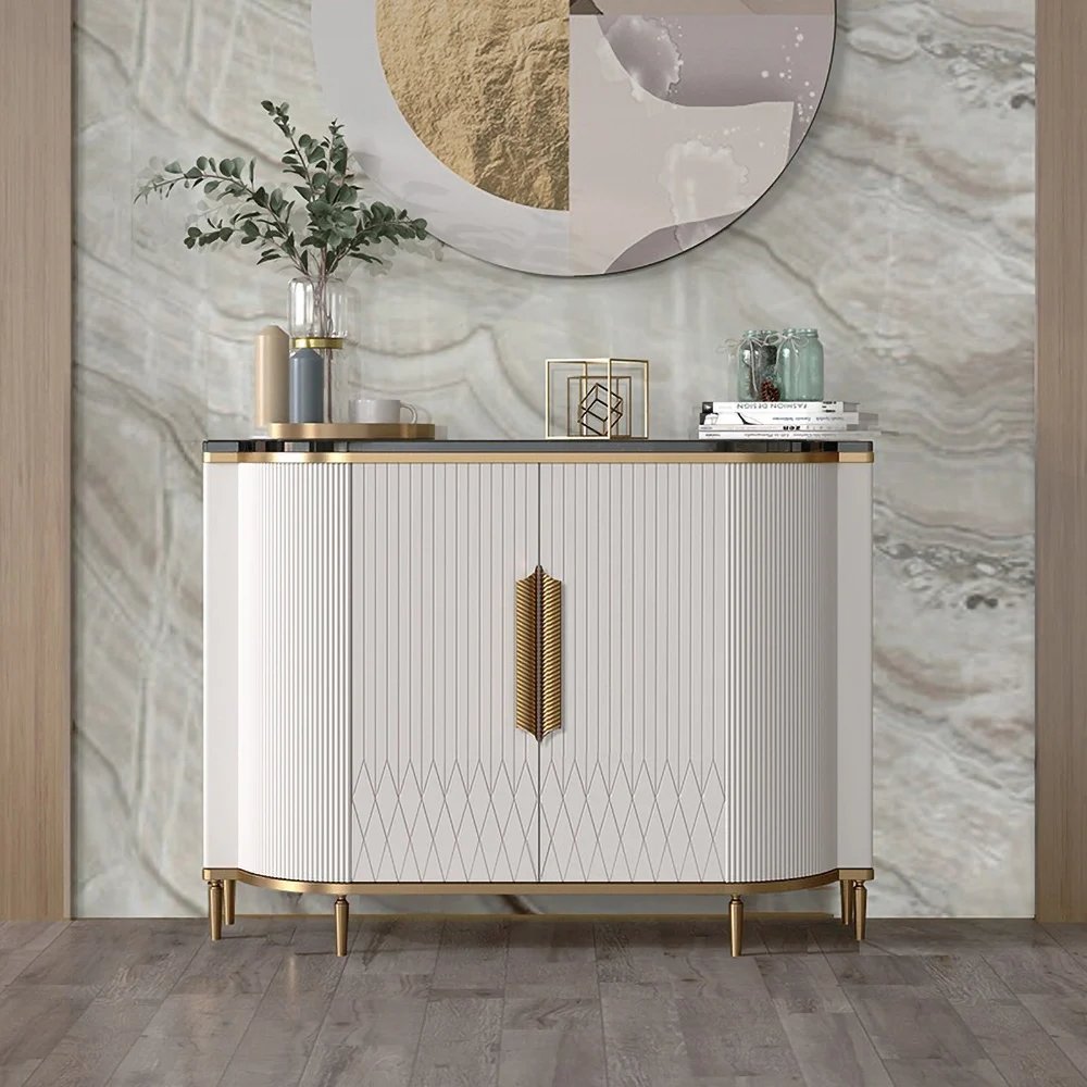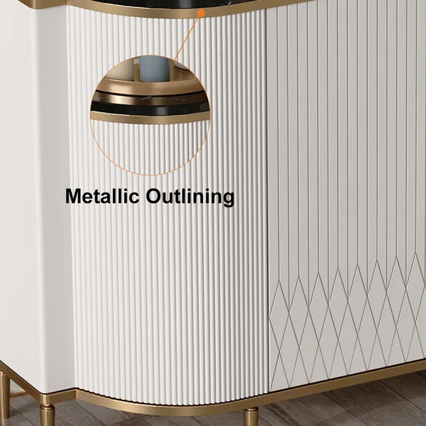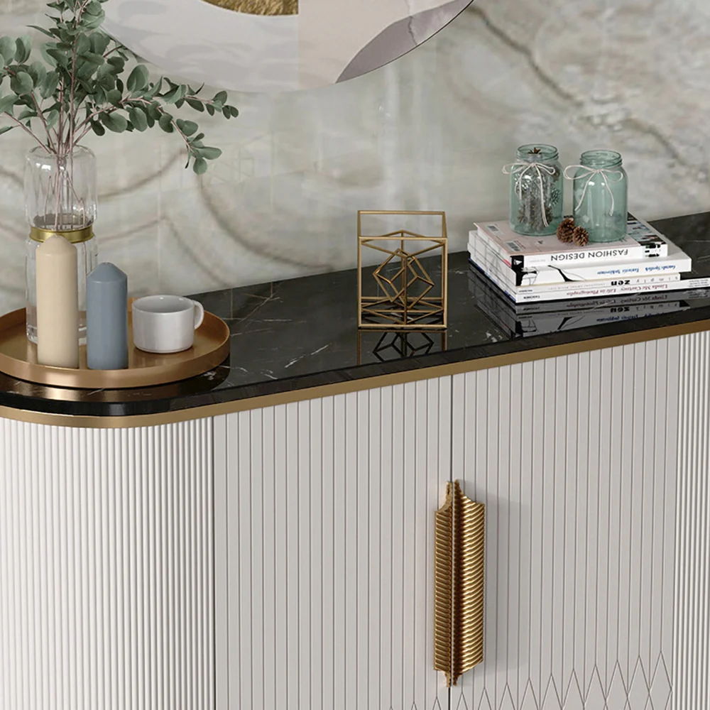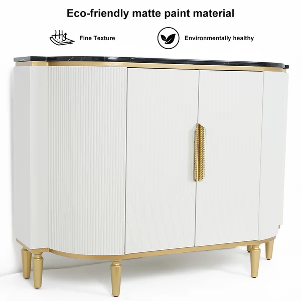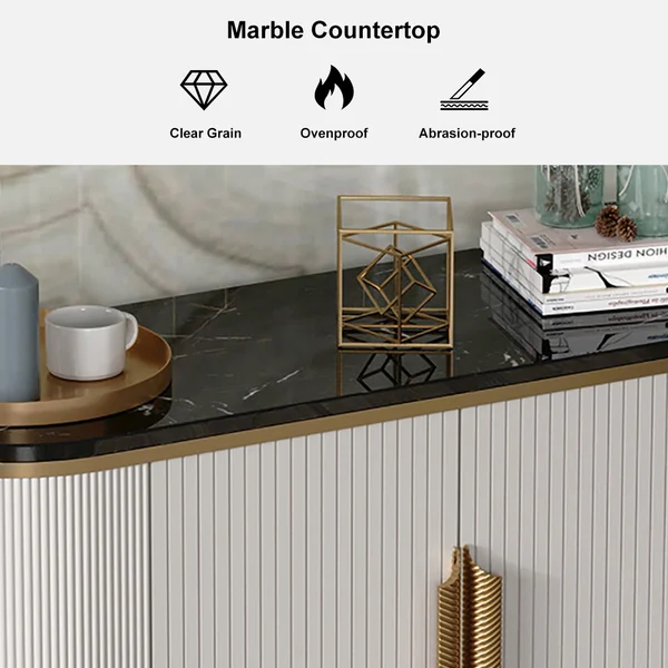Beautifully designed with exquisite grain, this stunning sideboard cabinet creates a refreshing sense of order in your home. Accented with tasteful geometric lines, this sideboard cabinet lends a glamorous flair that blends well with any modern decor. Featuring 2 doors with 2 adjustable shelves, it can be ideal to store dining linens, plates, and other kitchenware collection, stunning and functional. Boasting refined manufactured wood with faux marble and high-class metal, this sideboard buffet allows long-lasting service and timeless sophistication.