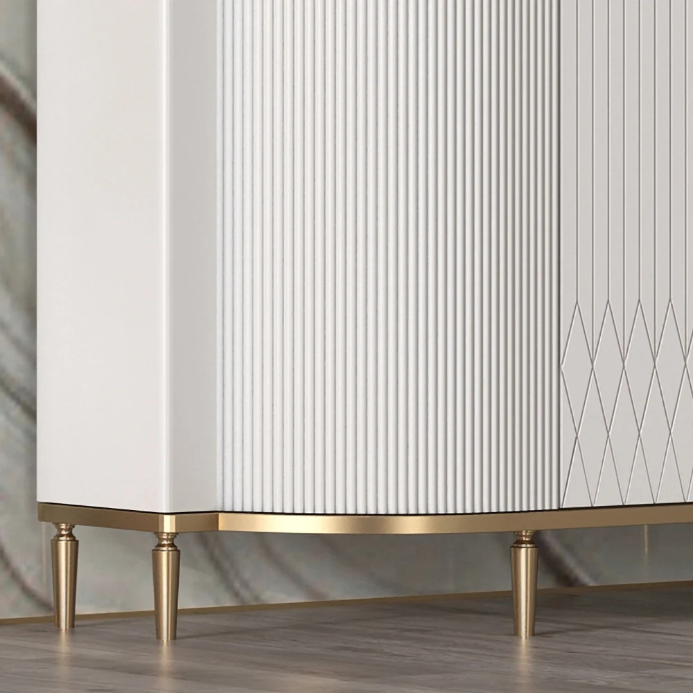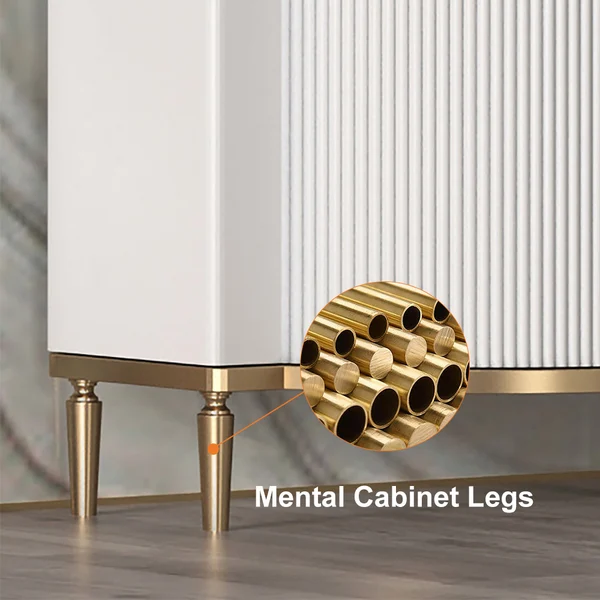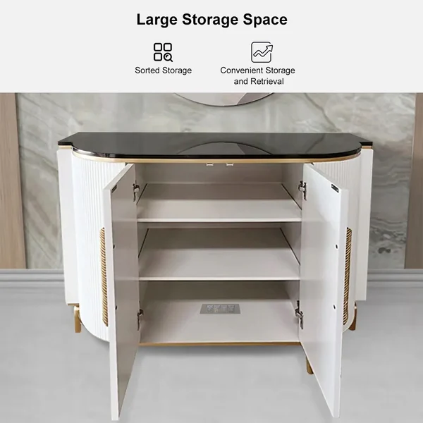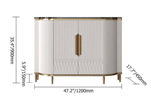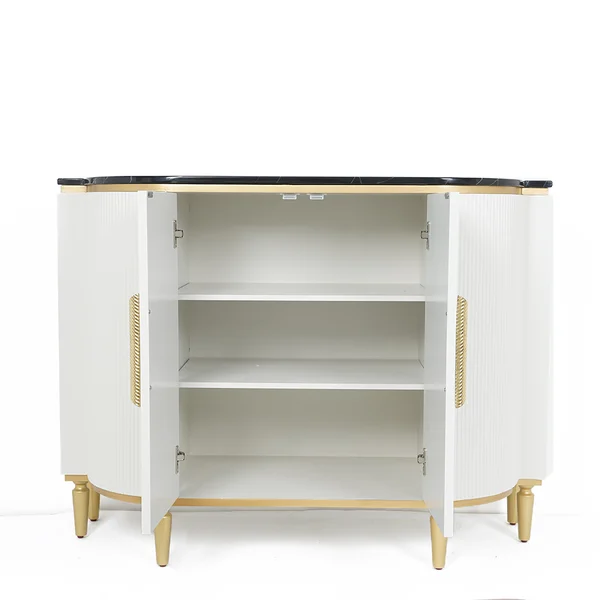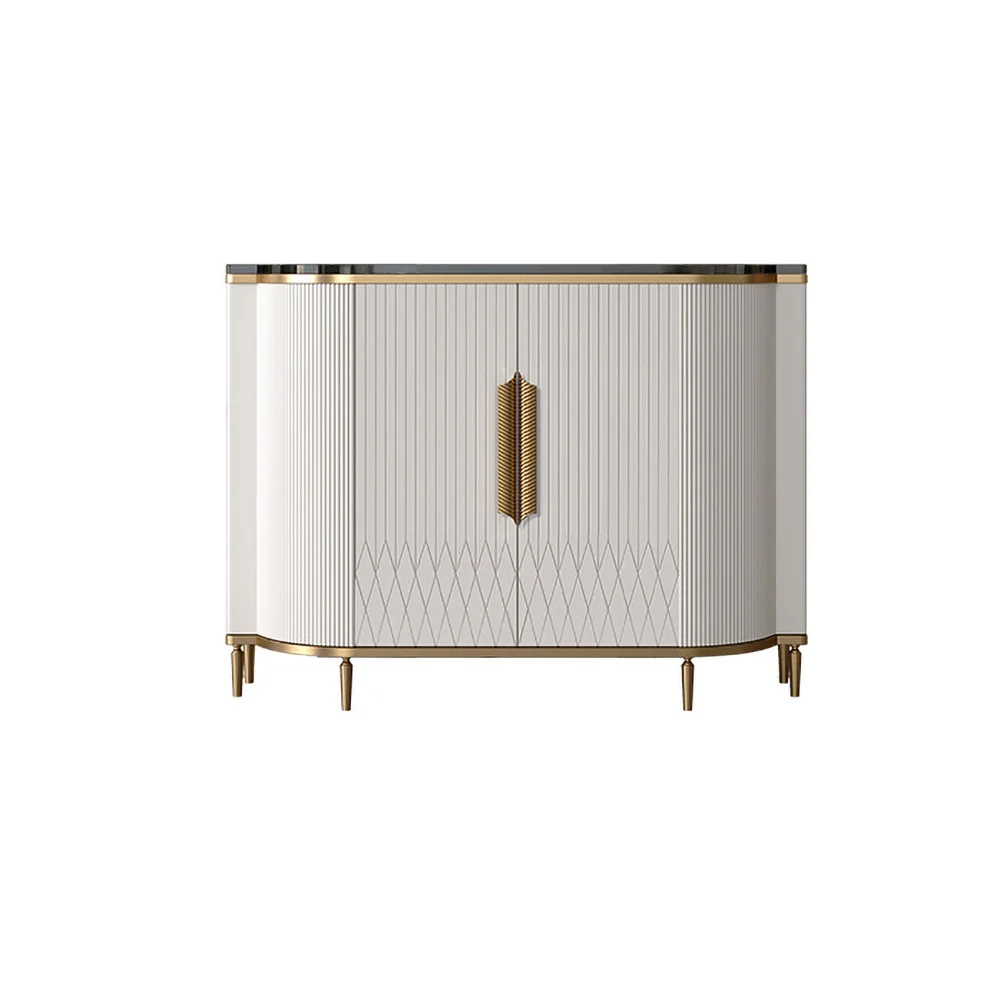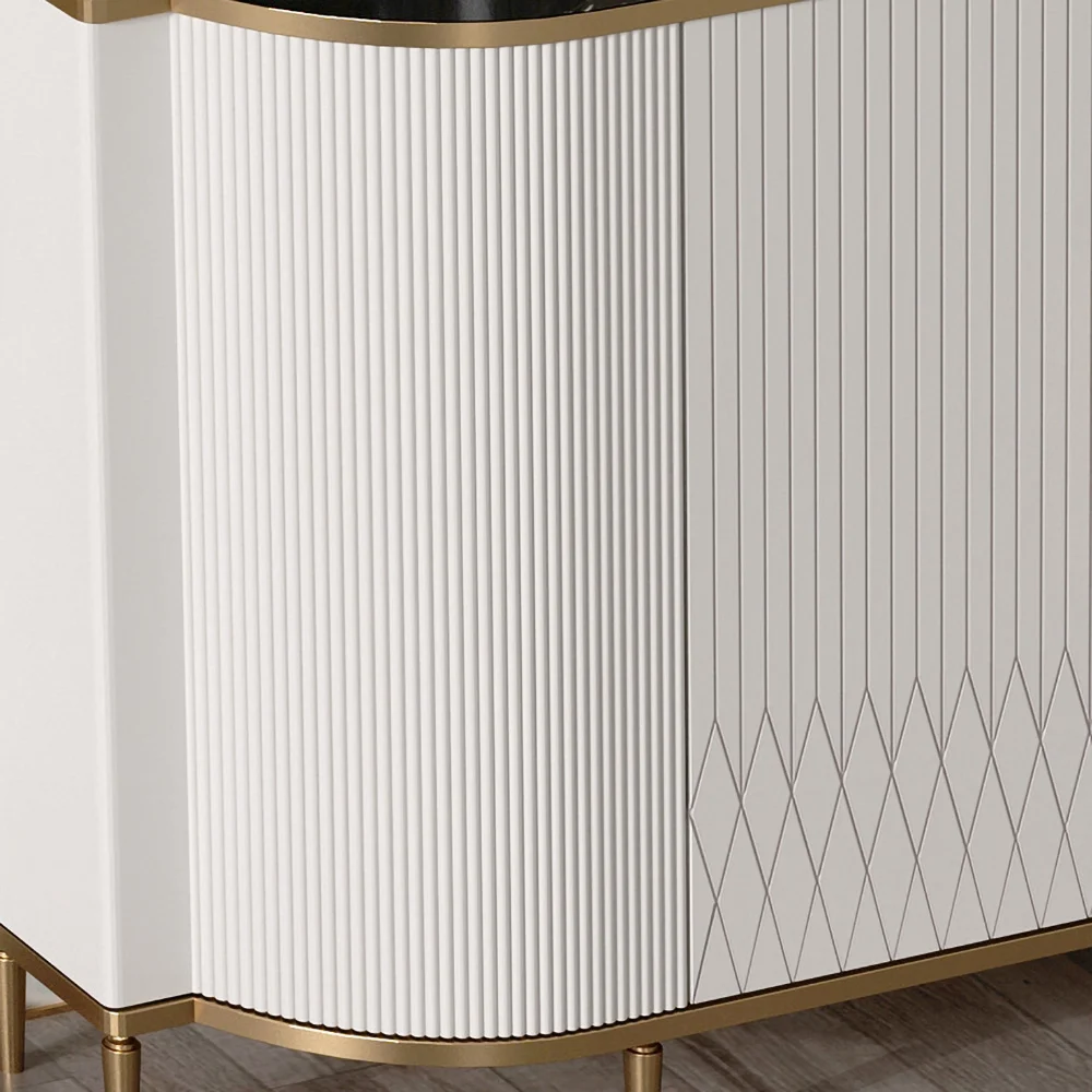 Beautifully designed with exquisite grain, this stunning sideboard cabinet creates a refreshing sense of order in your home. Accented with tasteful geometric lines, this sideboard cabinet lends a glamorous flair that blends well with any modern decor. Featuring 2 doors with 2 adjustable shelves, it can be ideal to store dining linens, plates, and other kitchenware collection, stunning and functional. Boasting refined manufactured wood with faux marble and high-class metal, this sideboard buffet allows long-lasting service and timeless sophistication.
