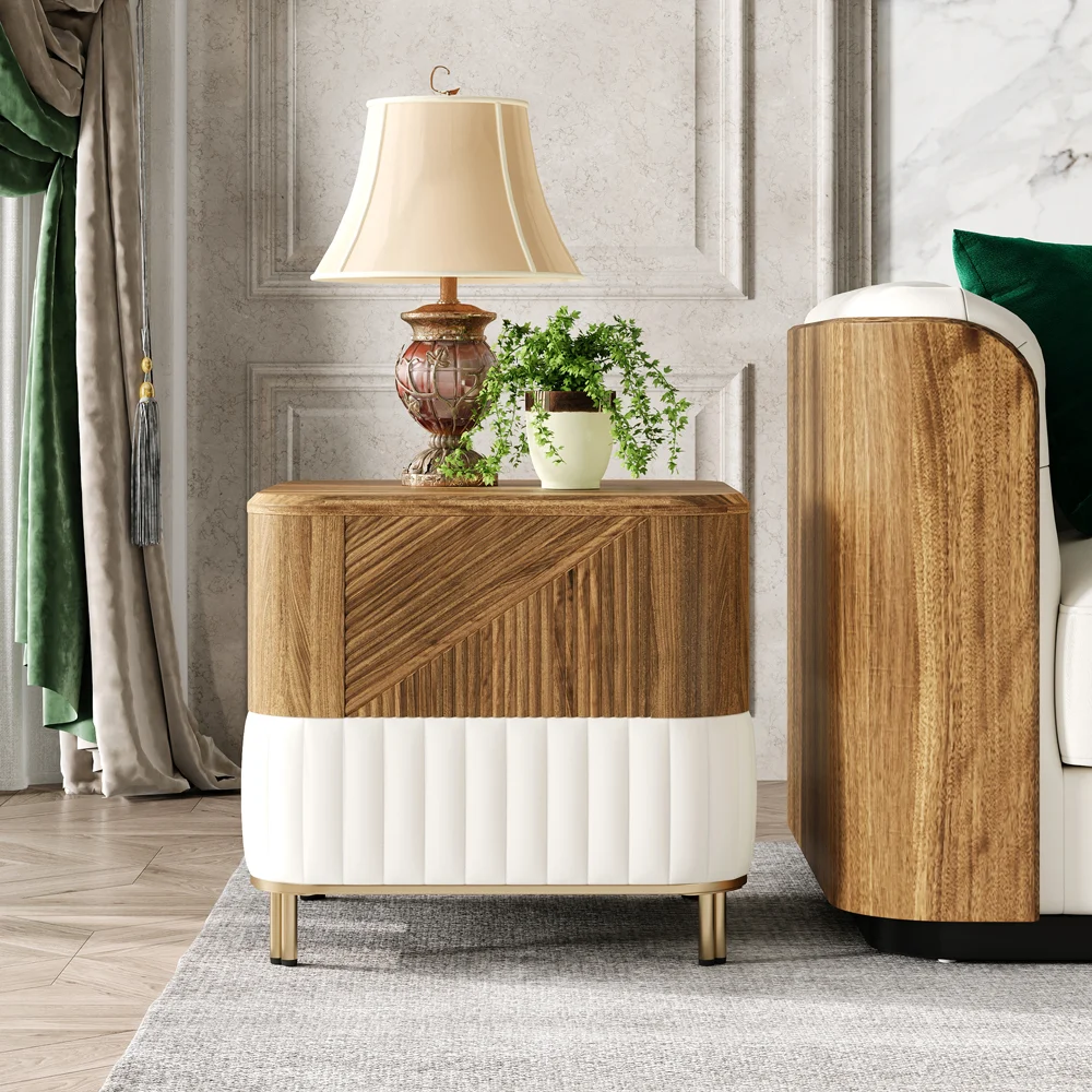 The end side table is made of premium wood, leather, and steel, rugged and durable, and will provide years of enjoyment.