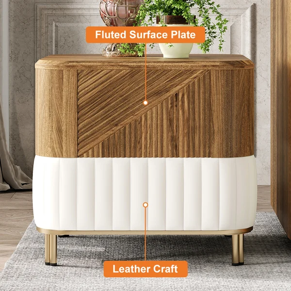 This end table with a diagonal geometric fluted design enhances its stylish appearance.